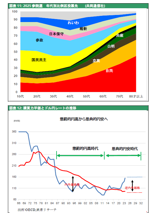 高市政権は圧倒的国民の支持の下で、保守ナショナリズム革命を遂行していくだろう。その端緒となる解散総選挙から動きが出てくる。富国強兵、財政再建の犠牲にされてきた国民生活の向上、米国に仕組まれてきた国際分業の有利化(例えば台湾から日本への生産移転)は必須である。円安は日本への生産移転を促進するだろう(図表12)。