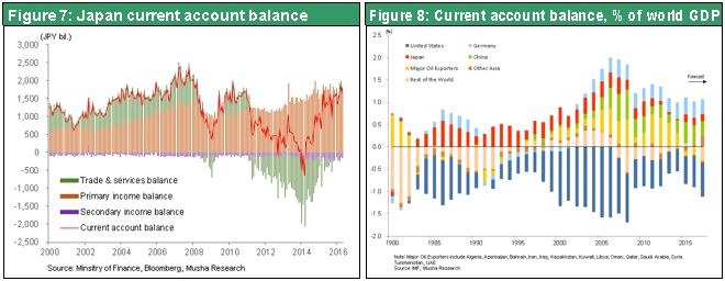 At this point, there is little doubt that China is in the midst of a serious crisis. That means people who are shunning risk have the advantage with respect to every type of investment activity. One aspect of China’s crisis is the “special” appreciation of the yen, which has hurt Japanese stocks. This conclusion is inescapable because there is not a single reason for the yen’s strength from the standpoint of fundamentals. Most importantly, every economic indicator is a reason for the dollar to appreciate. Prime examples are the differences between the United States and Japan regarding economic strength, interest rates and central bank policies. Furthermore, in the past, the yen had a tendency to strengthen when investors wanted to run away from global risk. This was because investors used the yen as the currency to procure funds for global risk investments. But now emerging country currencies and stocks are stable. As a result, there is no longer much demand to buy the yen in order to pull out of investments in assets with risk. The growth in Japan’s current account surplus is the only conceivable explanation for the yen’s strength. But the primary income balance (income from past direct overseas investments), which has nothing to do with foreign exchange, is the main reason for this growth. It’s a stretch to say that a higher current account surplus is responsible for the yen’s climb.