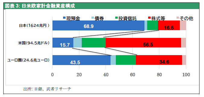 図表3日米欧家計金融資産構成
