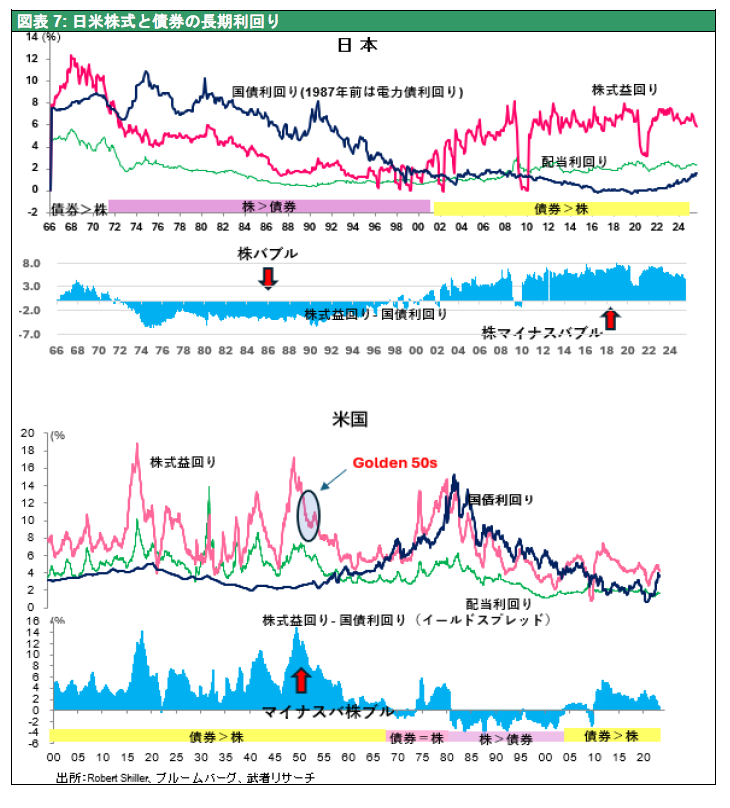 図表7 日米株式と債券の長期利回り