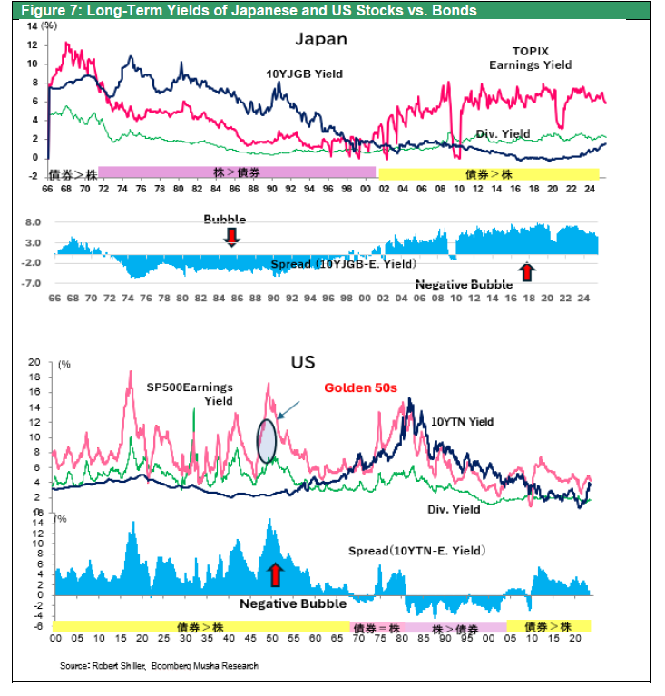 Figure 7: Long-Term Yields of Japanese and US Stocks vs. Bonds