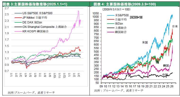 図表3、4 主要国株価指数推移