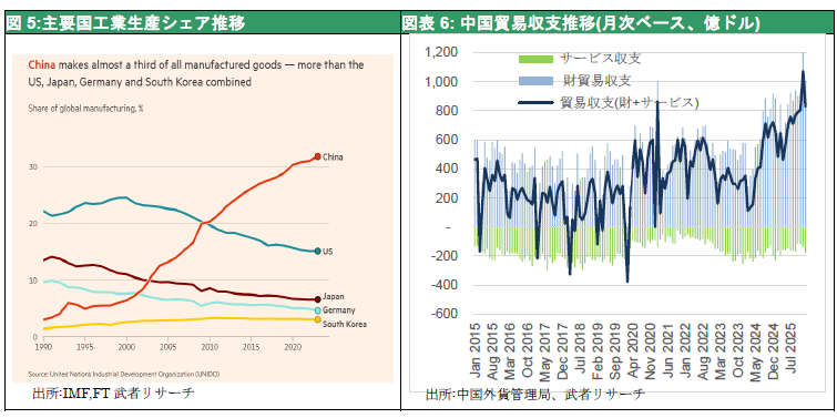 世界人口の17%に過ぎない中国は世界製造業生産の4割弱(米国の2倍強・・・PPPベース武者リサーチ試算)を集積し、鉄鋼5割、造船7割、スマホ、ドローン8割、PC、TV9割の高世界シェアを獲得している。この工業力により中国は巨額の所得と金融力を確保している。2025年の貿易黒字は1兆1800億ドル、世界GDPの1%に達した。過去10年間米国から中国へ毎年60兆円、4000億ドル(貿易赤字代金3000億ドルプラス純資本収支1000億ドル)の資金が流れ、今もそれは続いている。それを一帯一路プロジェクトやグローバルサウスに対する直接投資、証券投資、融資に振り向けることで、強烈な影響力を行使している。中国によるロシア原油の購入とロシアへの財の供給で対露制裁はしり抜けとなり、ロシアはウクライナ戦争で優位に立っている。中国はイラン原油の9割、ベネズェラ原油の8割を輸入することで、破綻国家化しているこれら専制国家群を自らのテリトリーに収めてきた。もはや米国から中国への覇権の移行は不可避とすら思える事態である。