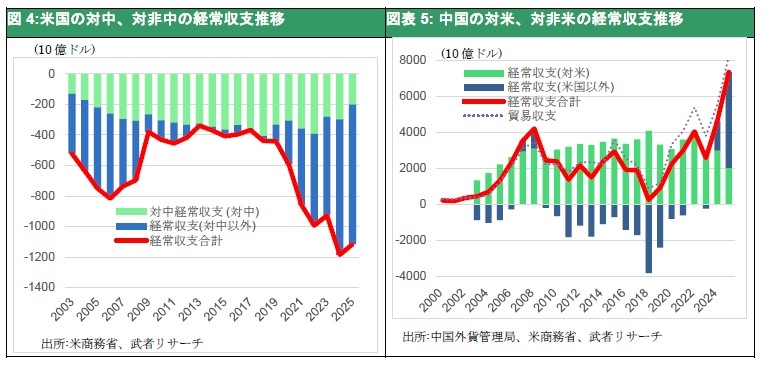 図4:米国の対中、対非中の経常収支推移 図表5: 中国の対米、対非米の経常収支推移