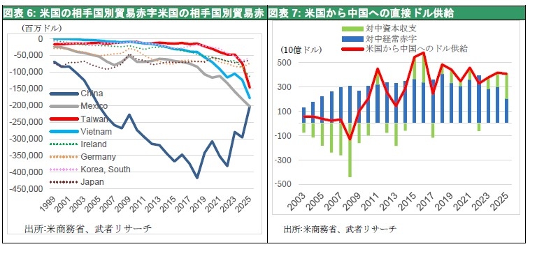 図表6: 米国の相手国別貿易赤字米国の相手国別貿易赤 図表7: 米国から中国への直接ドル供給