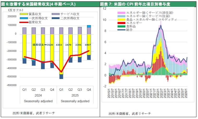 図6:改善する米国経常収支(4半期ベース) 図表7: 米国のCPI前年比項目別寄与度